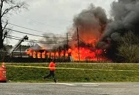 Photos from earlier Tuesday afternoon show flames consuming a large section of the building and thick black smoke billowing above the building and across West Avenue.