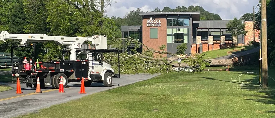 Ridgeferry Park is currently closed after a large tree fell across utility lines near the ECO Center.